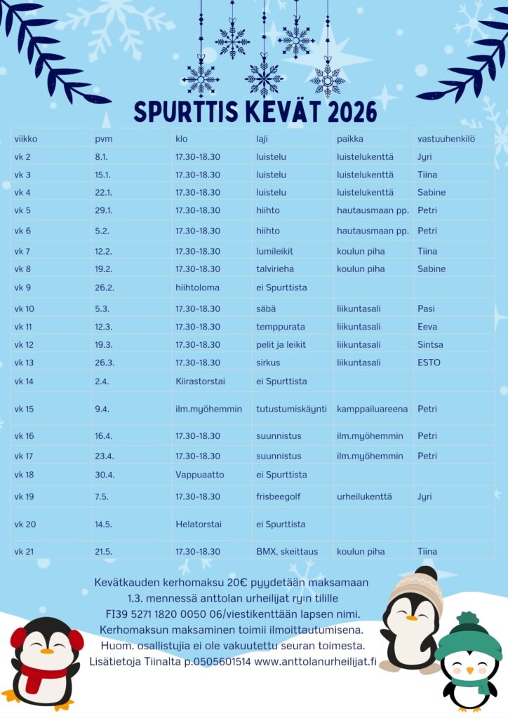 Ilmoittautuminen tapahtuu Spurttisjäsenyyden maksamisella Spurttiksen tilille. Jätäthän samalla myös yhteystietosi. Ilmoittaudu TÄÄLLÄ.