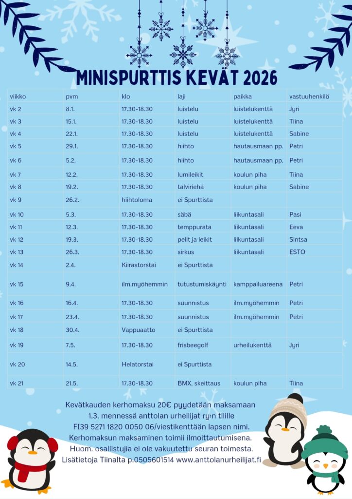 Anttolan Urheilijat ry tarjoaa ja kehittää Mikkelin kaupungin Anttolan kylän ja lähikylien lapsille, nuorille ja aikuisille liikuntamahdollisuuksia. Spurttiksen toimintamuotoja ovat: